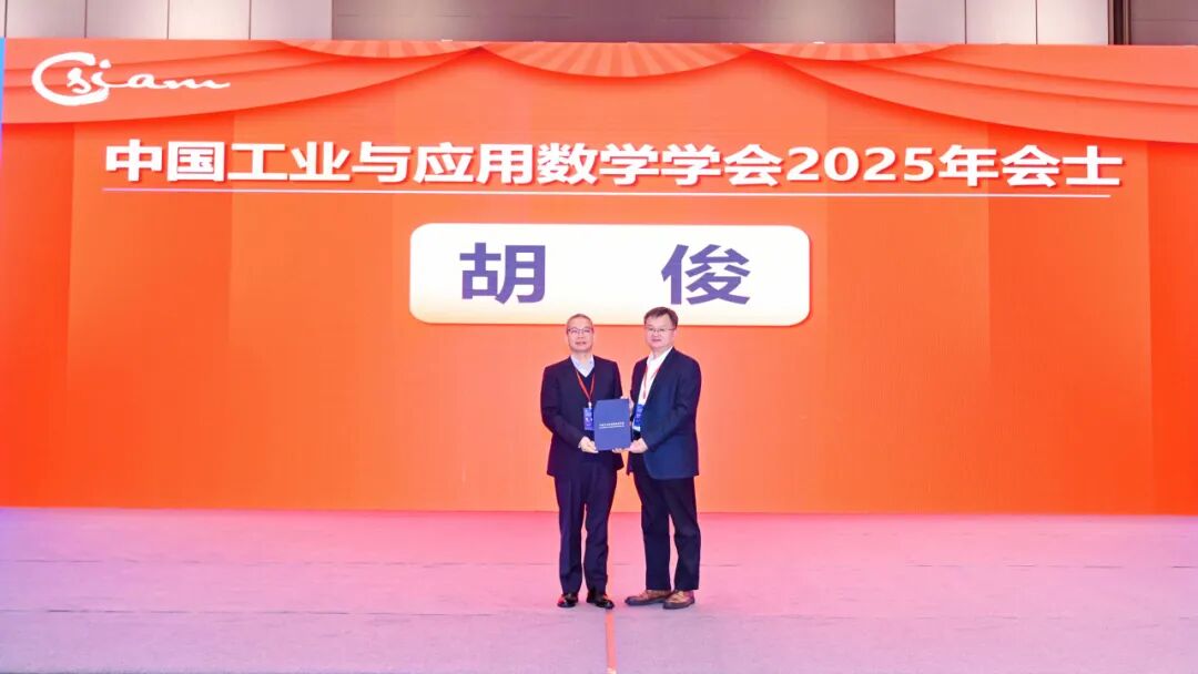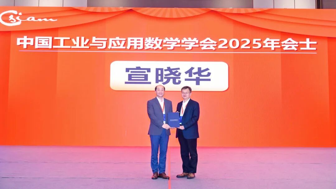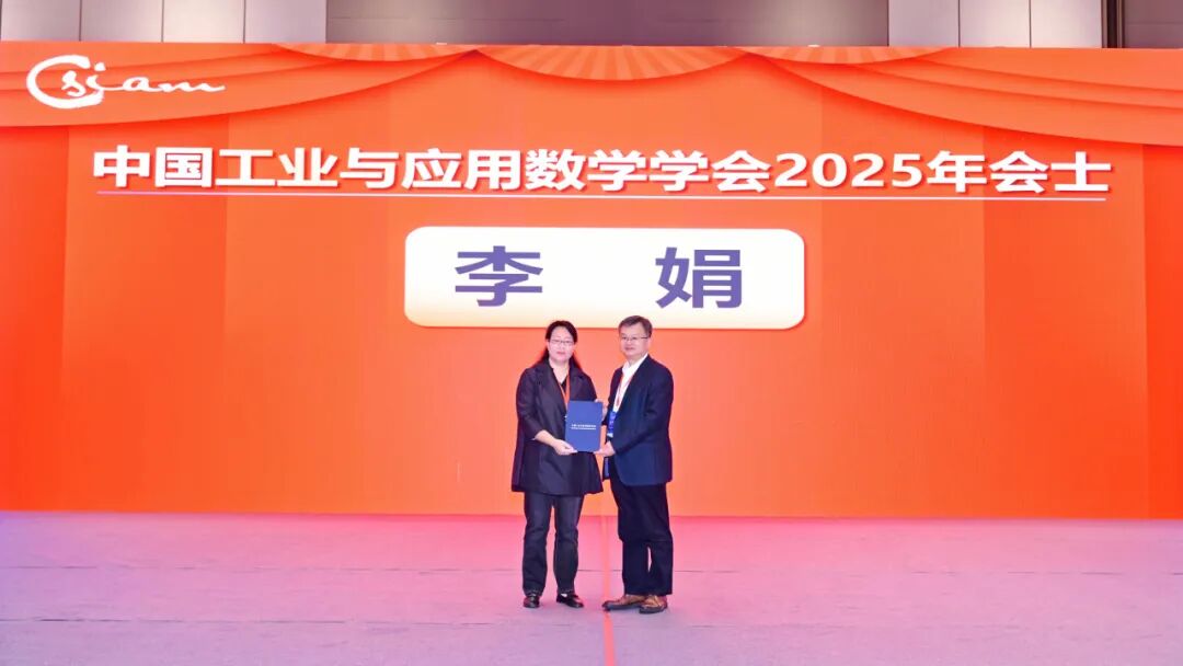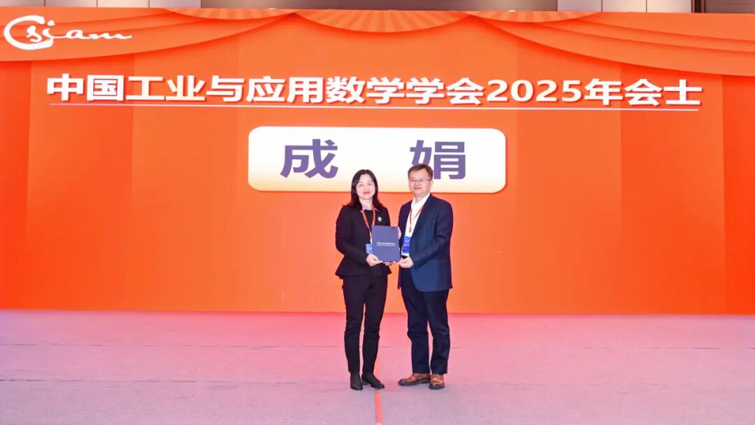 接着,大会举行了2025年CSIAM会士证书颁发仪式。CSIAM会士用于表彰在工业与应用数学领域有卓越成就的CSIAM会员,会士是会员在CSIAM的最高学术荣誉,为终身荣誉。首都师范大学成娟教授、复旦大学程晋教授、北京大学胡俊教授、山东大学李娟教授、香港理工大学乔中华教授、南开大学王兆军教授、华院计算技术(上海)股份有限公司宣晓华董事长、吉林大学张然教授、中国科学院数学与系统科学研究院郑伟英研究员当选2025年CSIAM会士。