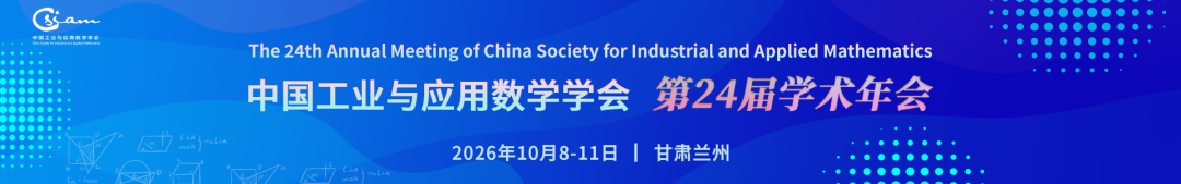 中国工业与应用数学学会第二十四届年会(CSIAM 2026)将于2026年10月8-11日在甘肃兰州甘肃大剧院国际会议中心举行。本次会议由中国工业与应用数学学会主办,兰州大学承办。